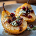 Top with Feta and Cranberries: When they are out of the oven, immediately sprinkle crumbled feta cheese and dried cranberries over each warm pear half. The heat from the pears will slightly soften the cheese, making it wonderfully creamy.