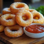 6. Serve and Enjoy: Once done, transfer the hot onion rings to a serving platter. Sprinkle lightly with sea salt while they’re hot for that perfect finish. Serve immediately with your choice of dipping sauce for a delightful snacking experience.