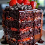 Dark Velvet Strawberry Cake is a luscious, rich dessert that combines the decadent flavors of chocolate with the bright sweetness of fresh strawberries. This cake is not just a feast for the eyes; it’s a sensory experience that envelops you in its dark, velvety richness while the strawberries add a pop of color and a burst of flavor. With each bite, you’ll find a harmonious balance between the moist, chocolate layers and the fruity freshness, making it an irresistible treat for any occasion. It’s perfect for celebrating special events, birthdays, or simply indulging in a cozy dessert after dinner. You’ll wonder why you didn’t make this cake sooner!
