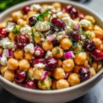 Feta and Cranberry Chickpea Salad with Lemon Vinaigrette is a vibrant, refreshing dish that not only tastes great but also provides a medley of textures and nutritional benefits. This salad marries earthy chickpeas with tangy feta cheese and sweet cranberries, creating a symphony of flavors that dance on your palate. Picture the creamy feta melting into the savory chickpeas, perfectly balanced by the juicy burst of cranberries and the zesty, bright notes of lemon vinaigrette. This wholesome dish is an ideal choice for a light lunch, a hearty side at dinner, or a delightful snack any time of day.