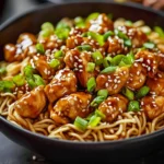 Combine: Add the drained noodles to the skillet with the sticky chicken, tossing gently to combine everything. Ensure that the noodles soak up that luscious sauce, making every bite delightful.