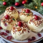5. Decorate and Serve: Garnish your cheeseball with fresh cranberries and green candy-coated chocolates, placing it on a serving platter. Serve it with an assortment of crackers or crisp apple slices, making it easy for guests to dig in.